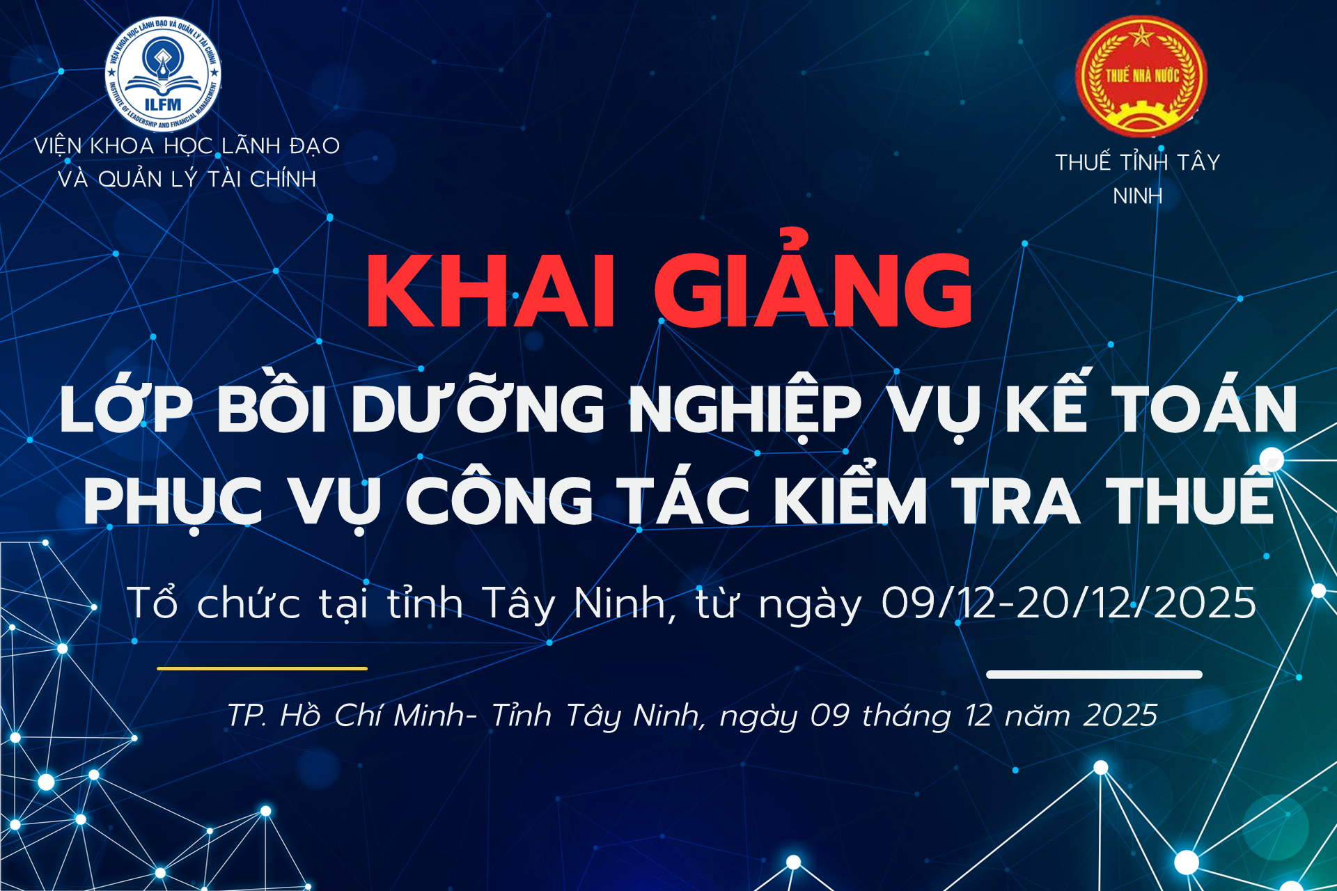 Hòa chung không khí cuối năm, nhằm đáp ứng yêu cầu ngày càng cao của công tác kiểm tra, quản lý thuế trong bối cảnh mới. Vào lúc 18h30 ngày 09/12/2025, Thuế tỉnh Tây Ninh đã long trọng tổ chức Lễ Khai giảng Lớp Bồi dưỡng nghiệp vụ kế toán phục vụ công tác kiểm tra thuế cho đội ngũ công chức Thuế tỉnh. Lớp bồi dưỡng có sự tham gia của 162 học viên, thể hiện sự quan tâm sâu sắc của Lãnh đạo Thuế Tây Ninh đối với công tác phát triển nguồn nhân lực.